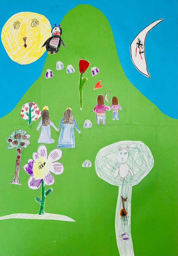Basierend auf dem, was Amina und Lucy in Dulsberg gesehen und erlebt haben, illustrieren die beiden MĂ€dels ihre fantasievolle Welt. Mehrmals am Tag werden in der Nachbarschaft verdĂ€chtige Personen, Monster und unverstĂ€ndliche Dinge gesehen. Und natĂŒrlich die Schutzengel und Held*Innen gibt’s auch.