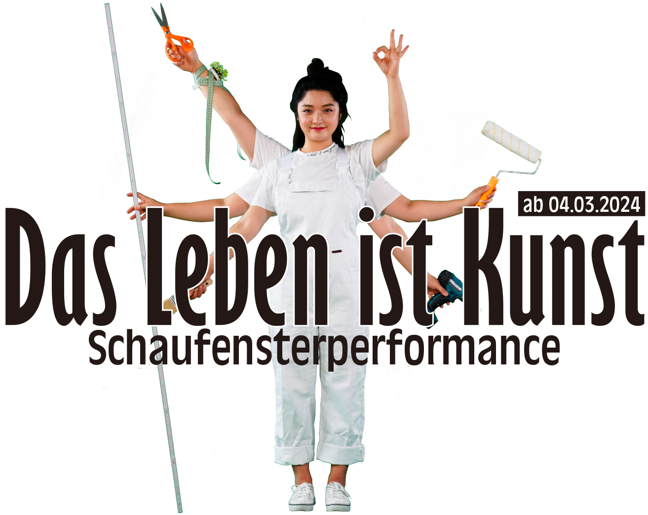 ‘Die neue Quartierskünstlerin vom Dulsberg, Ji Hyung Nam(34), hat sich dem Stadtteil mit einer fantastischen Schaufensterperformance vorgestellt.’