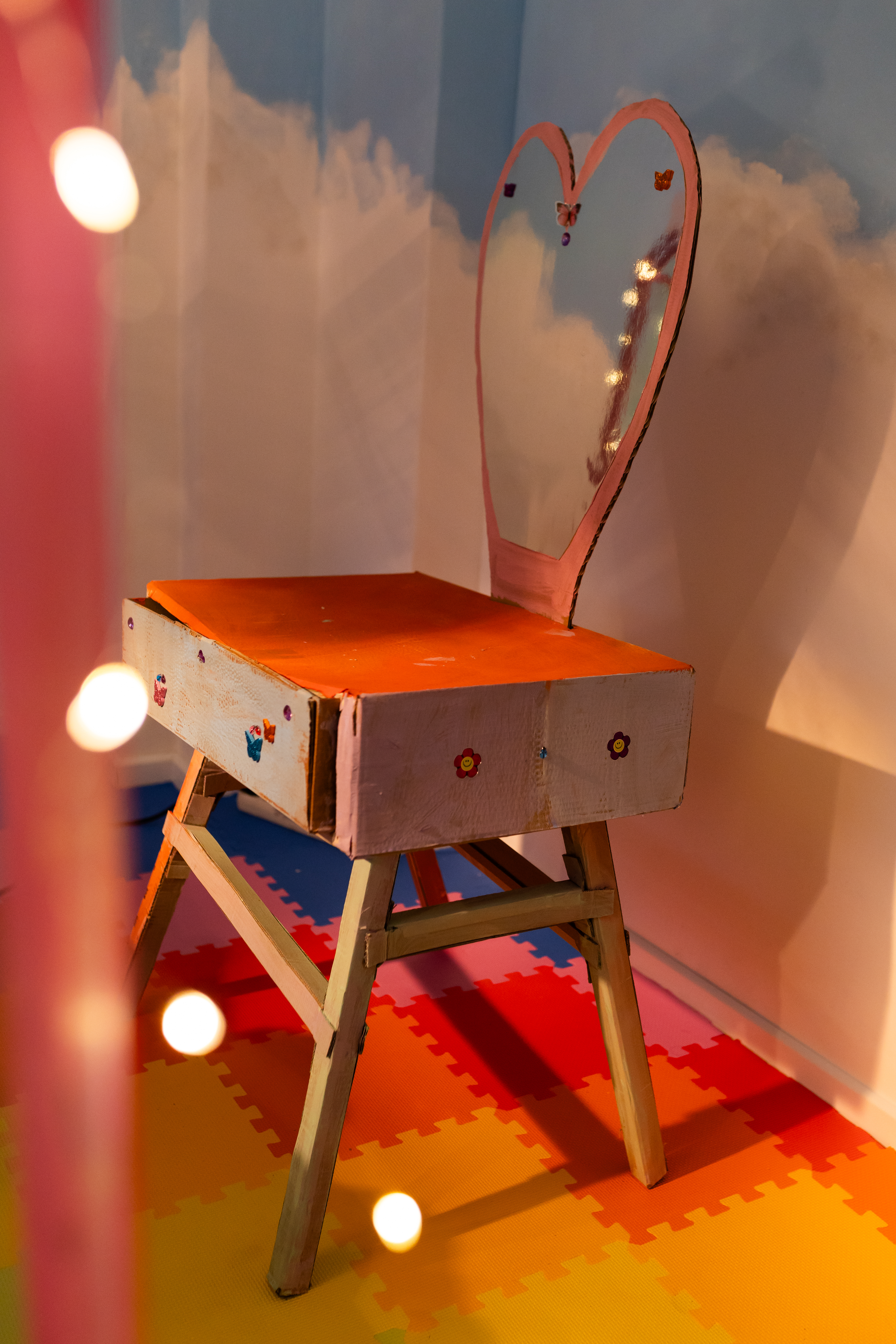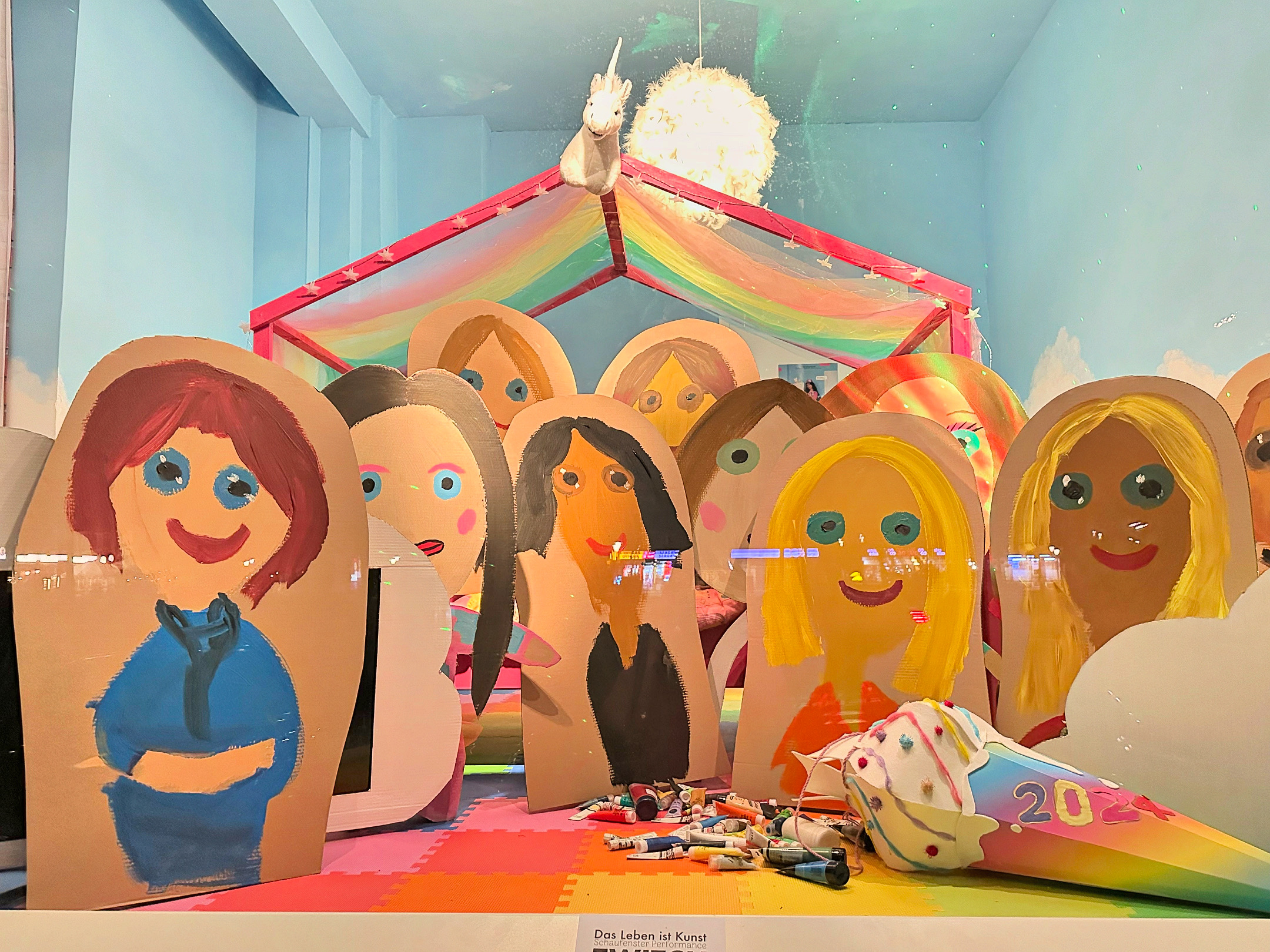 Im Laufe der folgenden Tage schaute sie immer wieder durch mein Schaufenster und fragte mich, ob sie auch etwas machen dürfe. Ich konnte ihr den Wunsch einfach nicht mehr abschlagen und habe sie schließlich ins Atelier eingeladen und sie einfach machen lassen. Sie fing an alles herauszunehmen und wollte ein Gruselhaus bauen. Sie erzählte mir genau wie es aussehen soll und welche Farben sie braucht. Am nächsten Tag fing sie an, ein Gesicht zu malen und erzählte dabei, dass sie Kosmetikerin werden möchte. Am nächsten Tag wollte sie Malerin werden. Und heute möchte sie Ballettlehrerin werden.