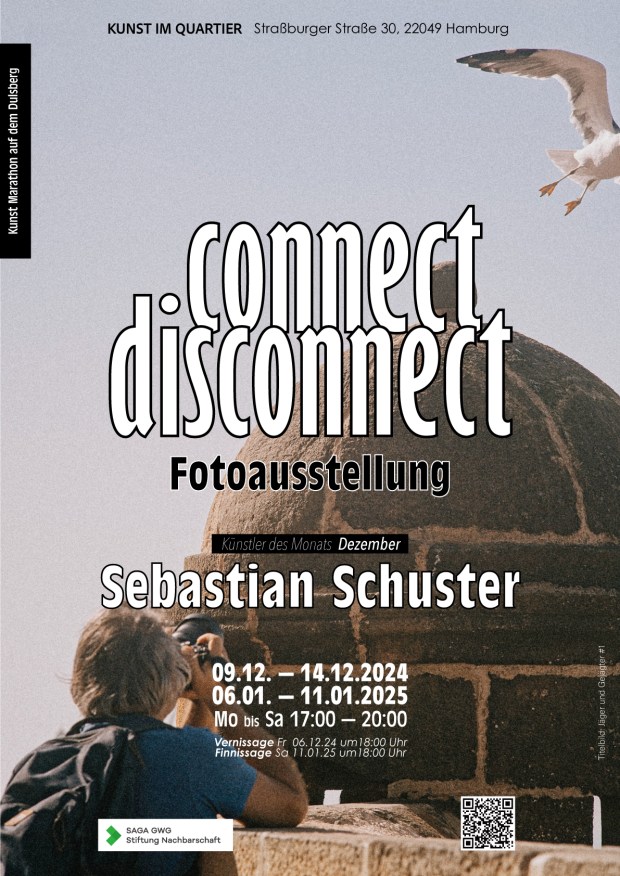Sebastian Schuster entdeckte bereits 1994 seine Leidenschaft fürs Atmen und später während seiner Schulzeit auch fürs Schreiben, Kritzeln und Fotografieren. Abseits seines Berufes als Webdesigner agiert er heute universalinteressiert als Fotograf, Poetry-Slammer, Autor und Bühnenmoderator, und erschließt neue Wege, diese verschiedenen Ausdrucksweisen zu kombinieren. Zum Fotografieren und Schreiben tritt er meist als stiller Beobachter auf, der seine Umgebung durchstreunt und sie wie durch ein Fenster mit einem gewissen Abstand dokumentiert. Darüber hinaus experimentiert er aber auch mit Mixed-Media-Ansätzen und programmiert Kunst mit Code. Sein Ziel ist es, sonst übersehene oder verpasste Perspektiven aufzuzeigen und so gesammelte Momente verschiedener Orte und Zeiten in Dialog zu bringen. Dabei gilt ihm in der Wahl seiner Arbeitsmittel das Prinzip „analog, digital – egal” und so kommt gleichermaßen digitales und analoges Vollformat zum Einsatz wie auch Kompaktkamera-Flohmarktfunde. Geboren in einer pfälzischen Kleinstadt, arbeitete er sich nach und nach über Saarbrücken und Danzig in immer größere Städte vor, um 2024 schließlich in Hamburg-Dulsberg anzukommen, wo er heute lebt und arbeitet. Anstelle seines Studienabschlusses ziert nun seine vom Kulturkommissariat ausgestellte Urkunde als „Dulsbergologe” seine Wand.